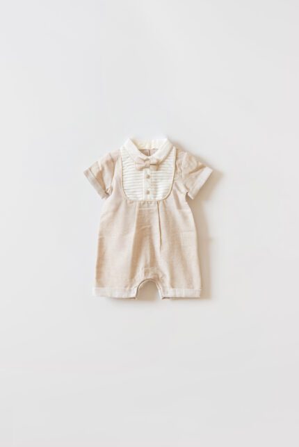 Keten Papyonlu Erkek Bebek Tasarım Tulum